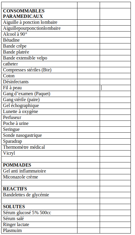 • Matériel médical (Tensiomètre, stéthoscope, otoscopes, thermomètre, pèse-personnes, etc…)